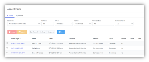 - The Status of the appointment (e.g. confirmed, cancelled)